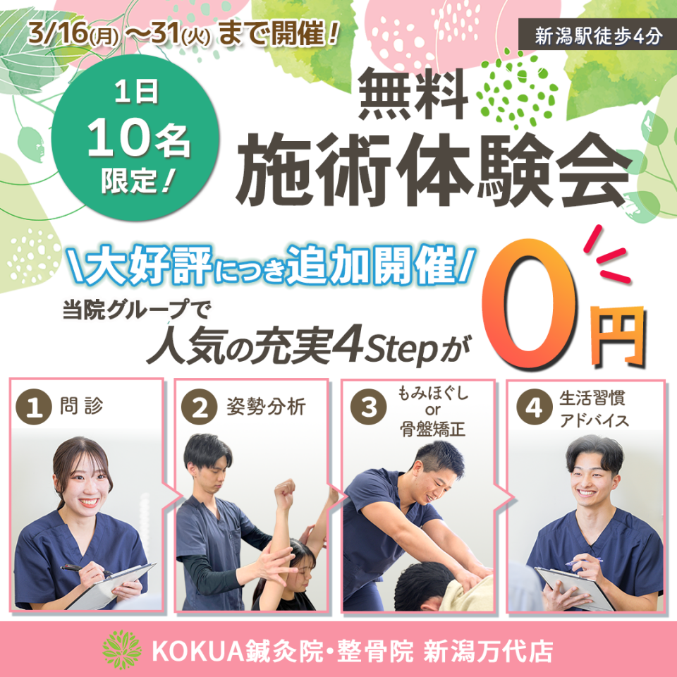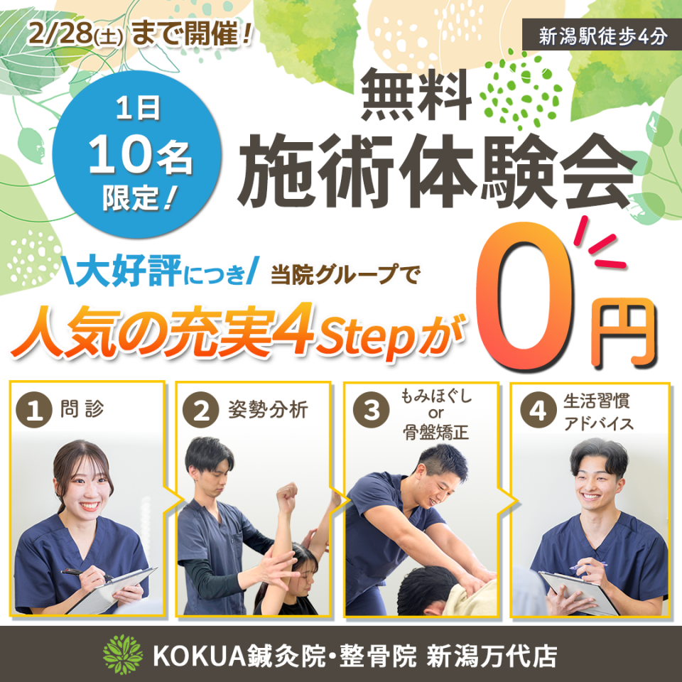KOKUA鍼灸院・整骨院 新潟万代店でございます。